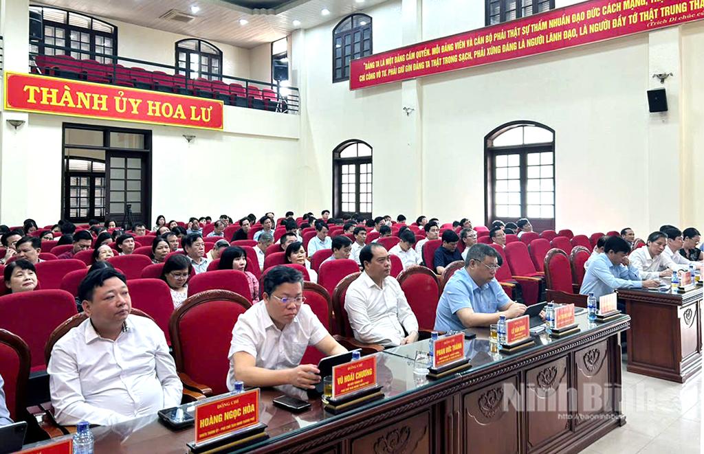 Các đại biểu dự hội nghị tại điểm cầu Thành uỷ Hoa Lư.