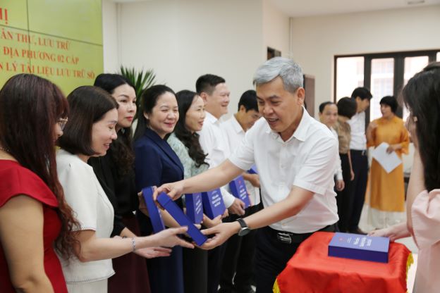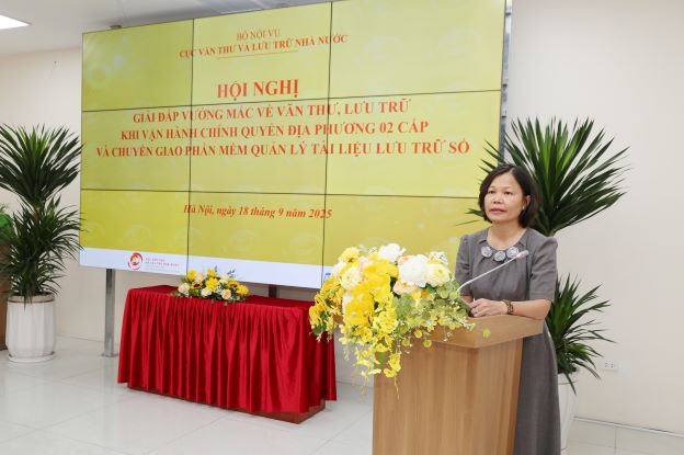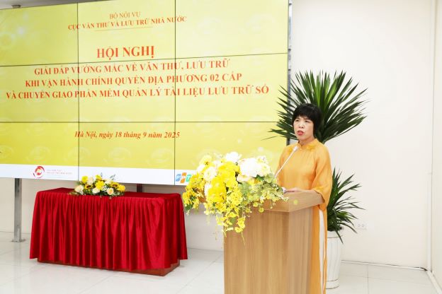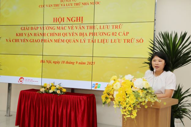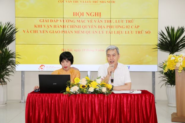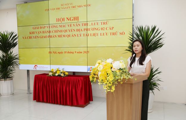 Bà Nguyễn Thị Thu Hoài - Trưởng phòng Phòng Tổ chức cán bộ và Hợp tác quốc tế nêu rõ: các nội dung về tổ chức, nhân sự do địa phương quyết định theo Luật Tổ chức Chính quyền địa phương; về vị trí việc làm tham mưu quản lý nhà nước thuộc Phòng Văn hóa, vị trí nghiệp vụ thuộc Văn phòng Ủy ban Nhân dân xã; về định mức số người làm việc, viên chức có quy định số lượng tối đa và tối thiểu và nội dung đào tạo, bồi dưỡng nghiệp vụ về văn thư, lưu trữ là trách nhiệm trực tiếp của địa phương nhưng Cục Văn thư và Lưu trữ nhà nước cử các báo cáo viên nghiệp vụ để chia sẻ, hỗ trợ về phổ biến, hướng dẫn, giải đáp nghiệp vụ cho các địa phương.